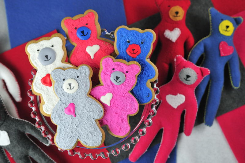 Here is the the whole family together : Felt Bears Toys that inspired me to make these Felt like Bear Cookies.