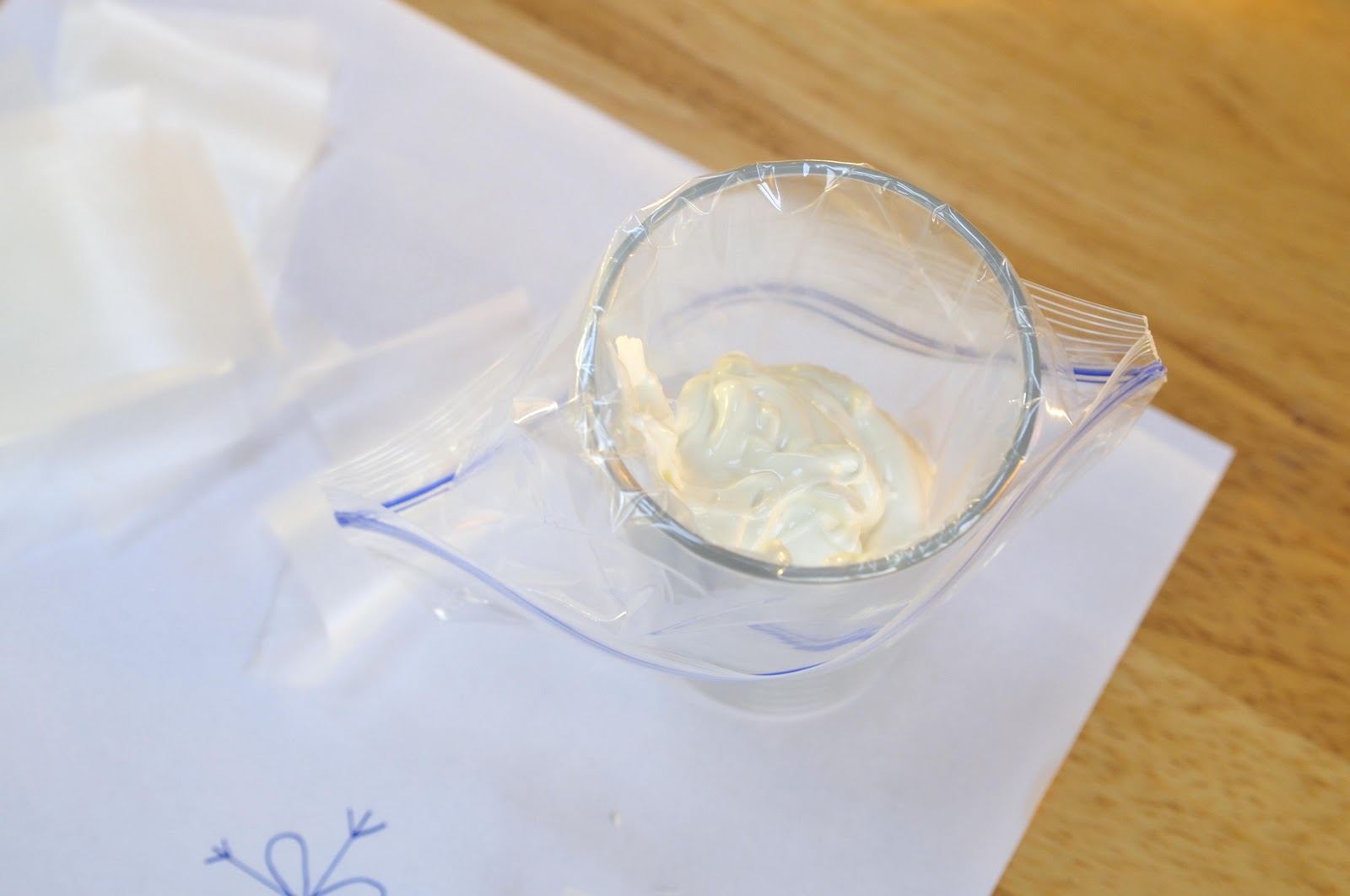 - Once ready, make a small opening in the corner of the sandwich bag and start piping away.